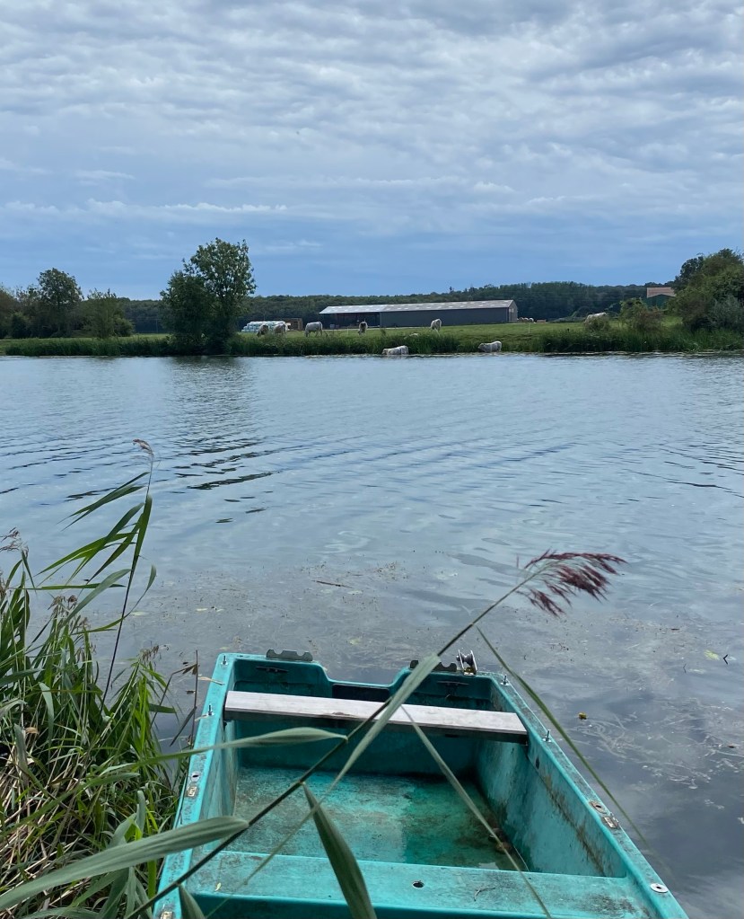 Cattle taking a dip. One steer waded into the water, and changed fields to another herd.!
