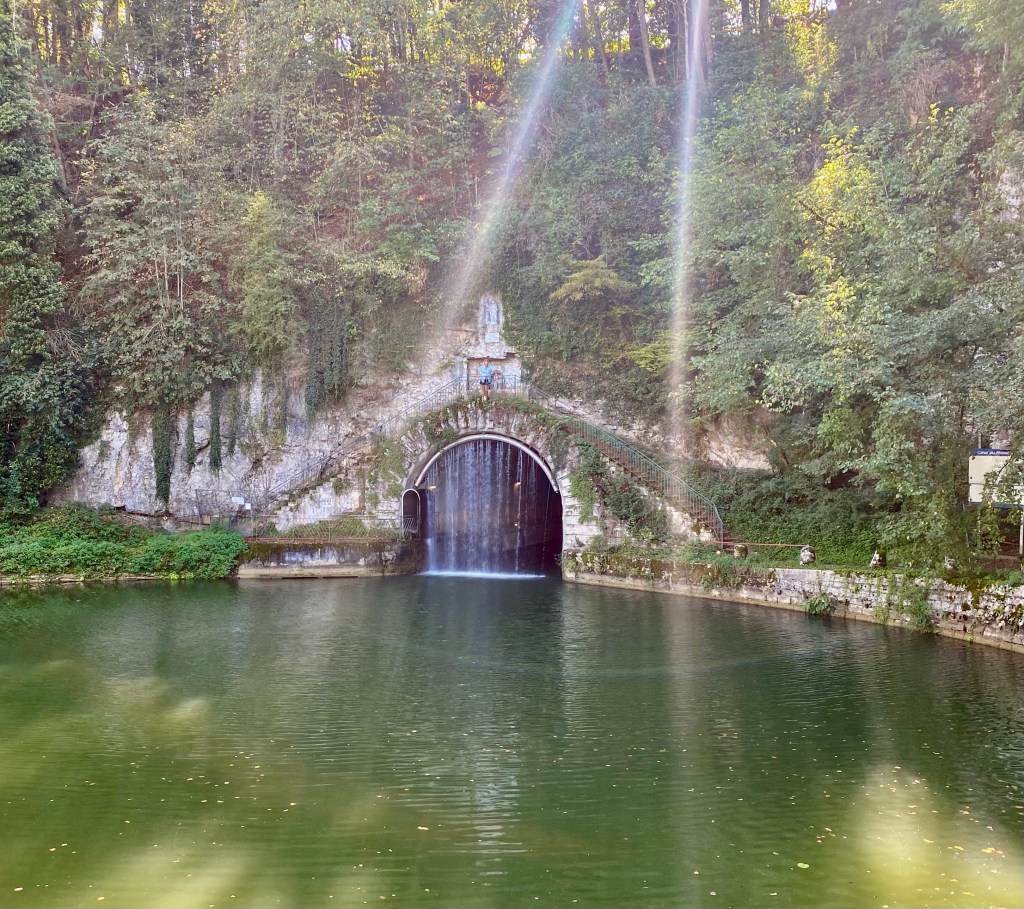A short canal tunnel offering a free shower for boaters, or maybe a boat-wash??? I’m above the arch!!