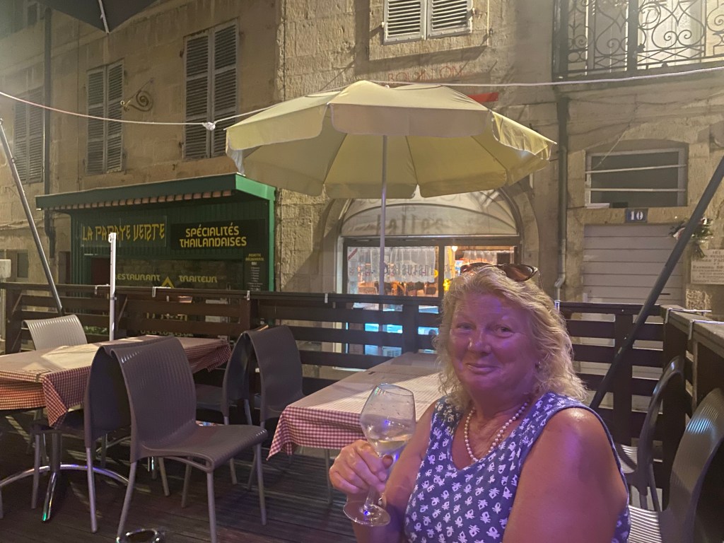 Today we had pedalled 1000 km so we celebrated in one of the very few open restaurants. (Sunday night). I had some small but delicious local fish, and Sue had a big chunk of Simmental beef, which I had to help her finish…as usual!
