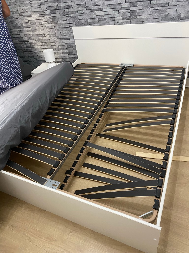 In the morning we removed the mattress to inspect the damage. Unbelievably the metal longitudinal support had been fixed with a wood screw through the visible plate!! It surely must have happened before! Not a good review on Booking.com!