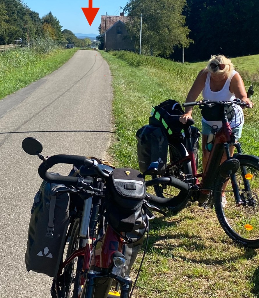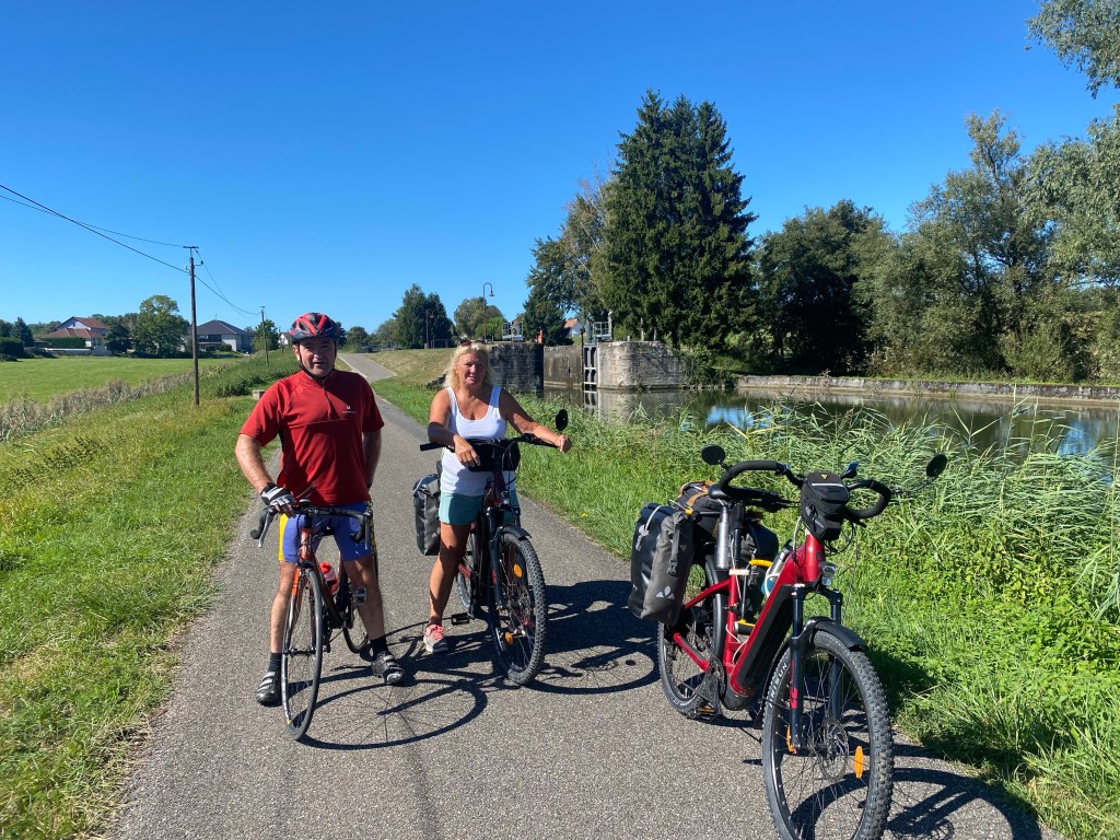 A local french cyclist, called Gilbert, cycled with us and talked us through the history of his area, and pointed out when we’d entered Alsace. He works for La Poste, and spent 2 weeks in Rugby learning how the Royal Mail deal with postal issues.