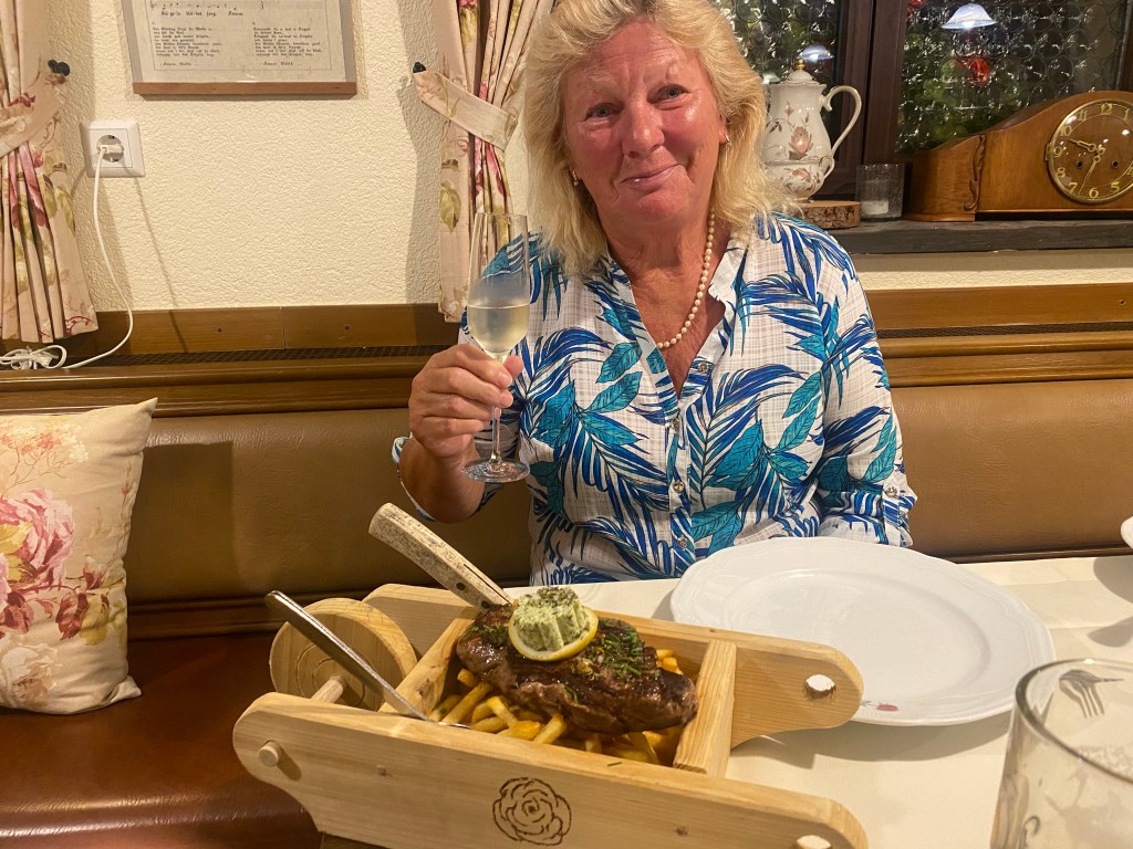 This was Sue’s favourite! To take this photo I held my camera through the wire fencing which set the alarm off; so at that point we said goodbye to the Schloss and found a coffee shop.