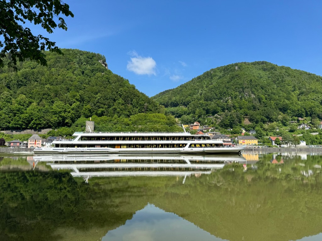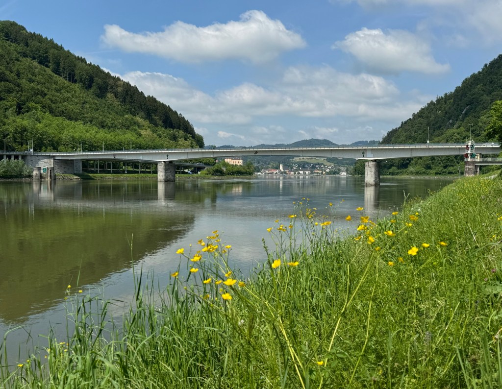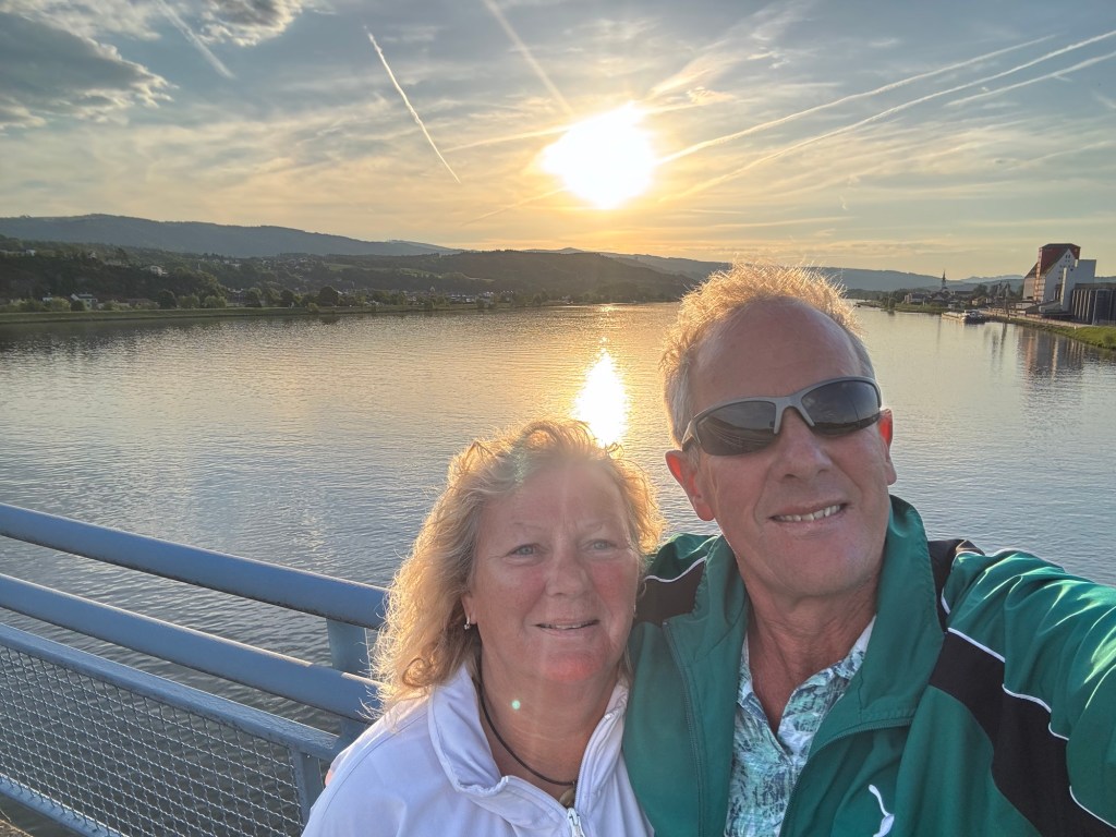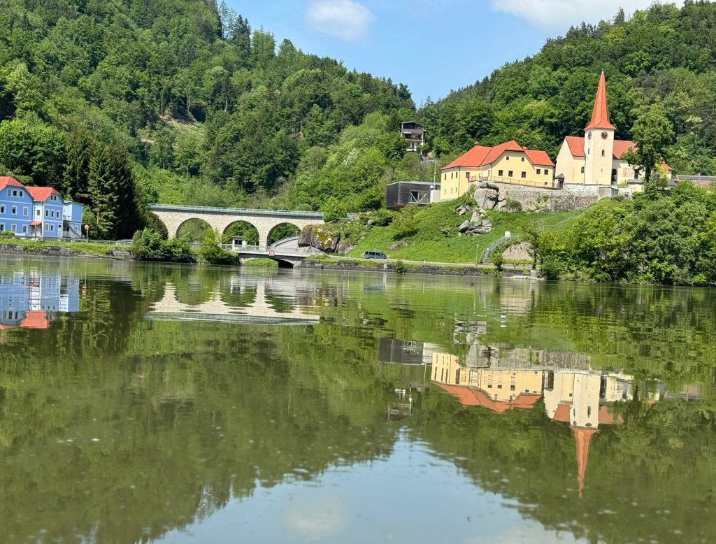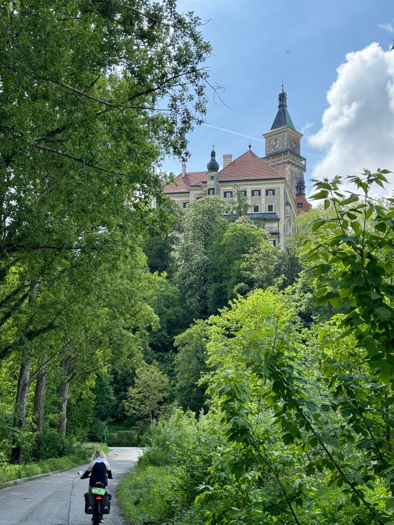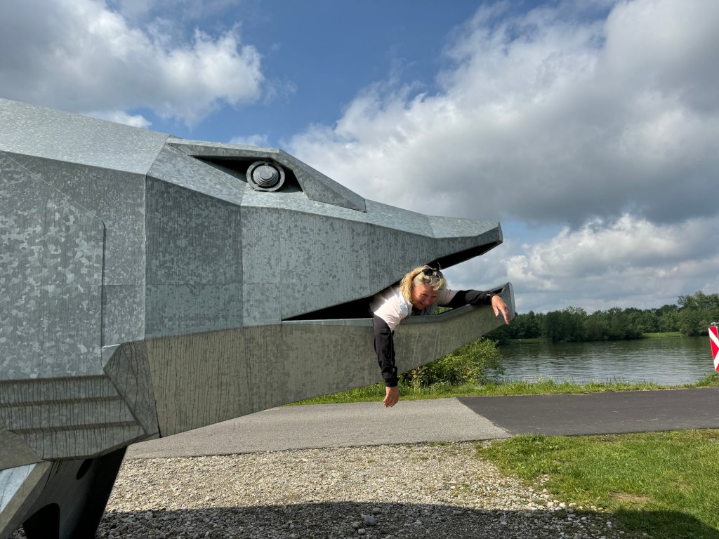 We had a late start, but we cruised along the river path for 20 km feeling good. The path took us past a crow eating an enormous walnut.