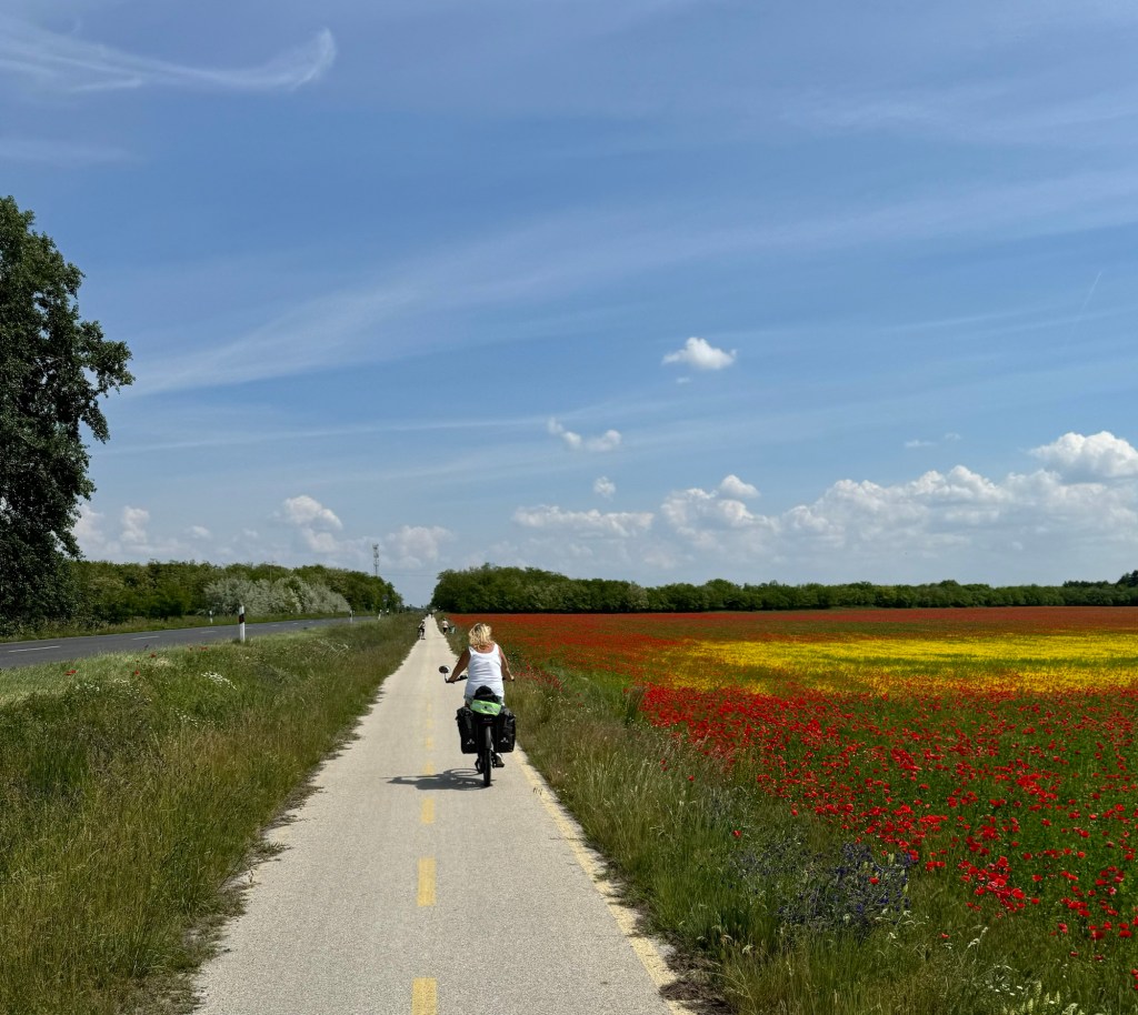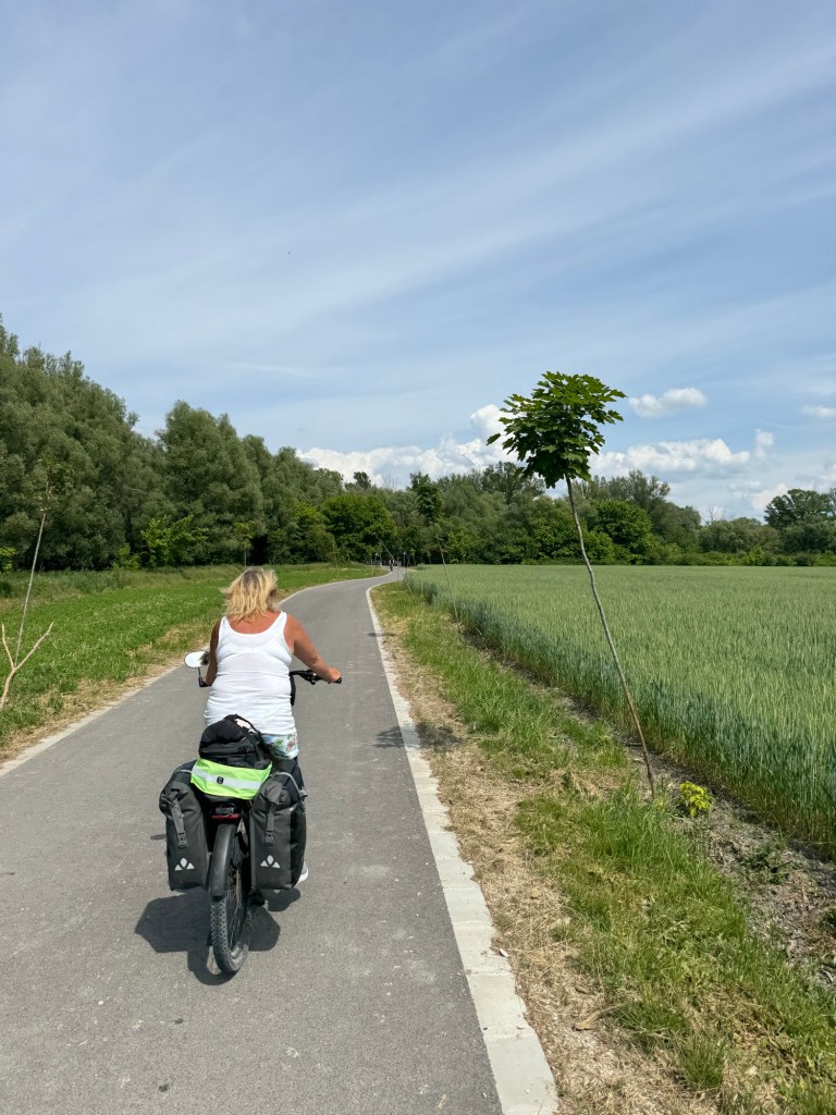 The first 10 km we followed the river on a gravel path. It took a while to get used to gravel again, as we’ve hardly had anything but tarmac this trip.