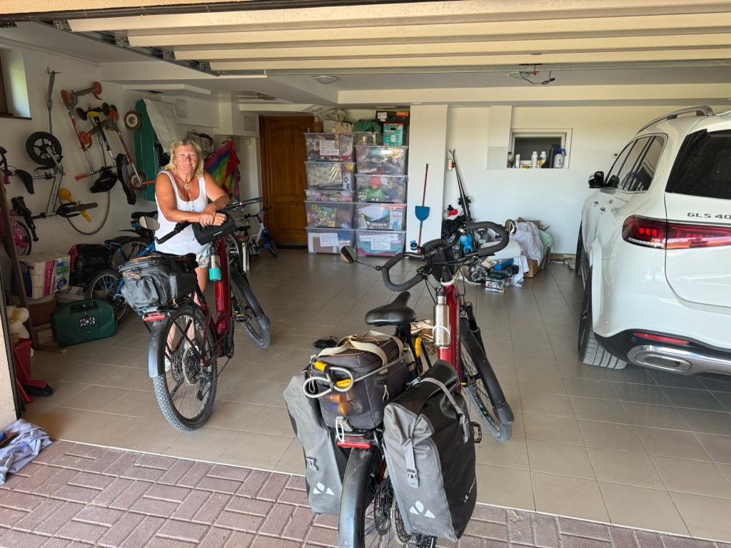 Gabor, who is a pilot and microlight manufacturer in Hungary, has kindly let us store his bikes in his garage for 3 months until we return in the autumn to continue heading east.