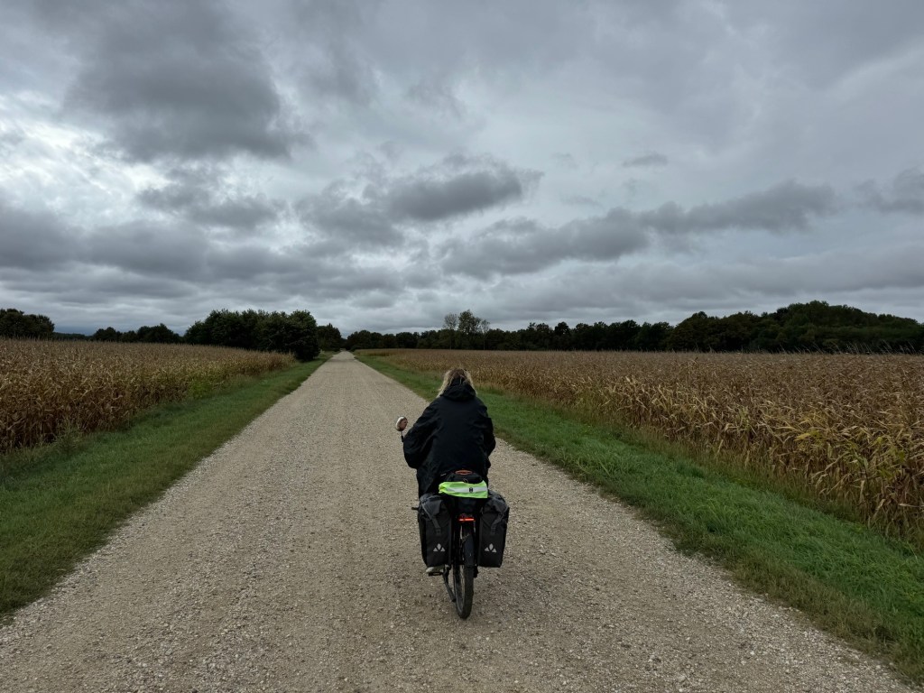 We didn’t see a soul through the border, then turned right and followed the Mur on gravel tracks for 15 kms through open countryside.