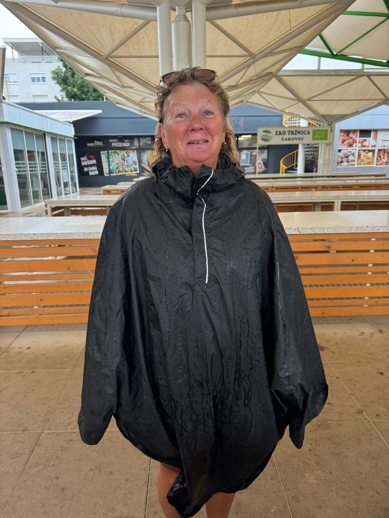 The forecast had been correct.: 5 kms before reaching Cakovec the heavens opened and we were drenched. We’d arrived at our apartment at 3 pm and thankfully we were let in earlier than normal, to dry out and catch up with the blog!
