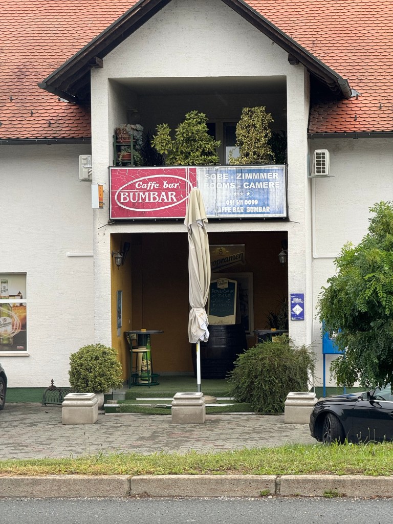 We left this cold lake and joined the busy road into Varazdin. We were tempted to find warmth in this bar. Unfortunately, it was on the other side of the road and the name put us off somewhat.