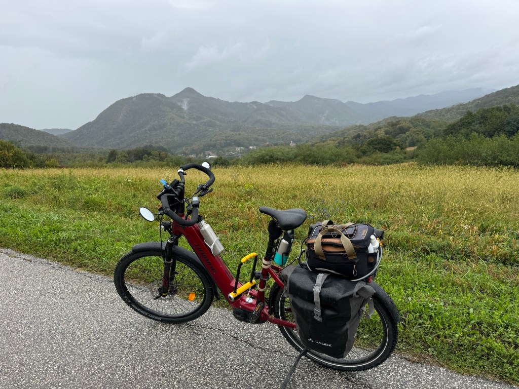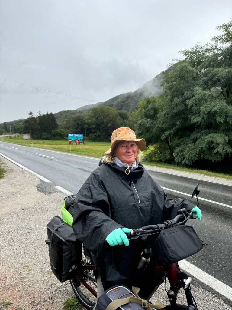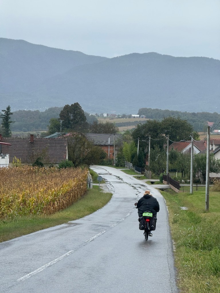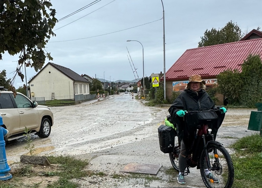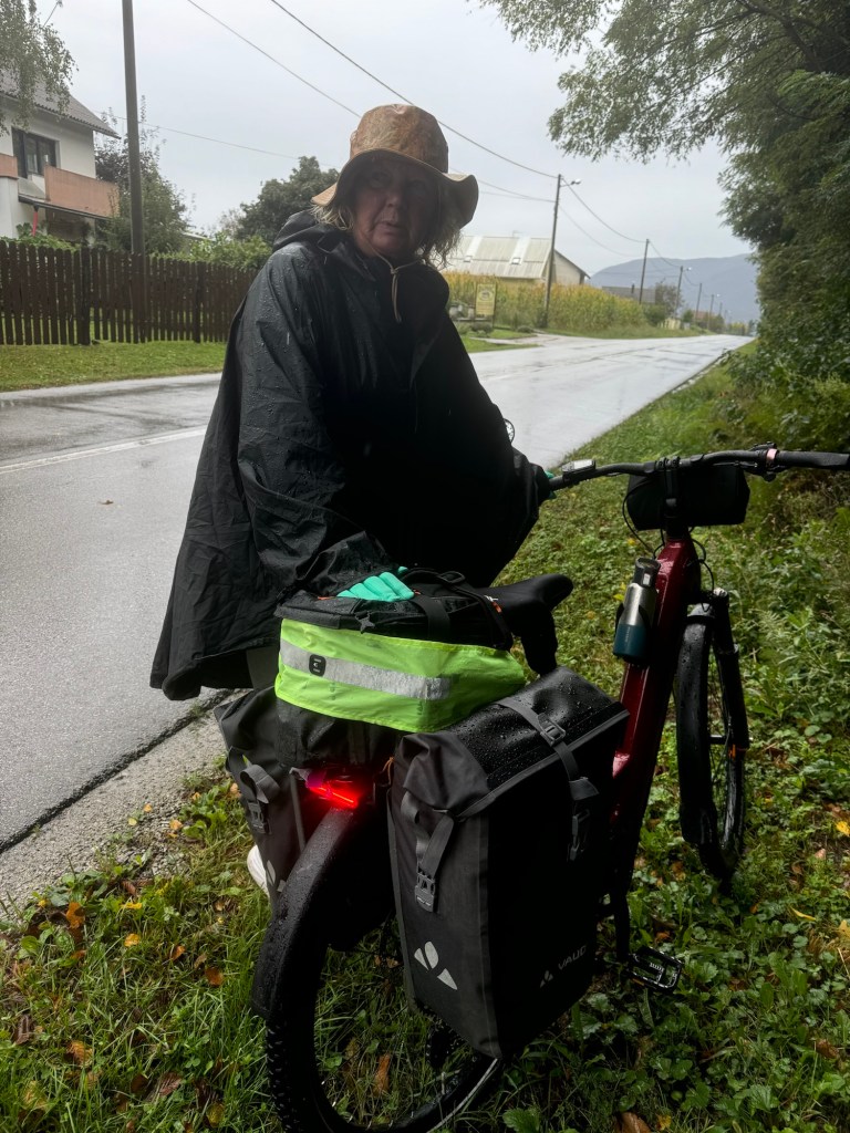 The road then levelled off and we had an uneventful ride, in heavier rain for another 10 km before reaching our destination; very wet , once again.