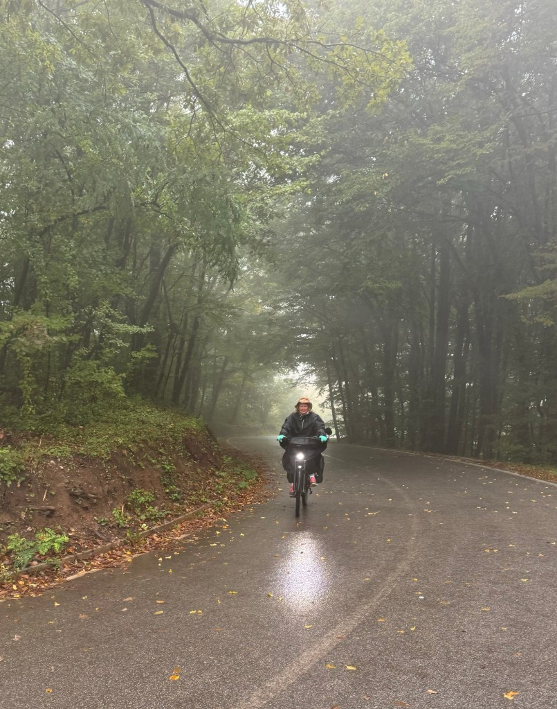 Our 14 th day looked promising, the sky looked brighter but it was very chilly. We planned for a good distance day through the mountains, as our forecast showed more wretched rain coming in mid afternoon.