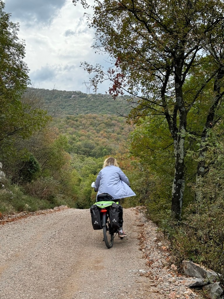 It seemed, on the map that we’d be following a small tarmac road but is was mostly downhill gravel for 10 kms🥵