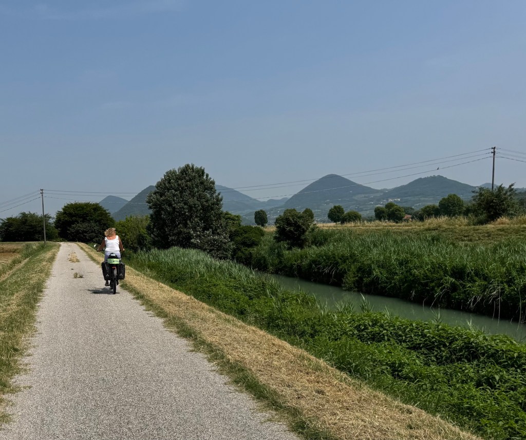 The first 20 kms went well, again travelling along dykes along water channels. A very fertile part of Italy,