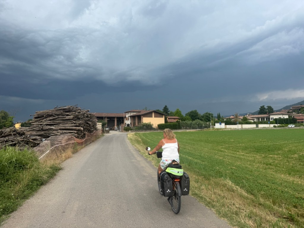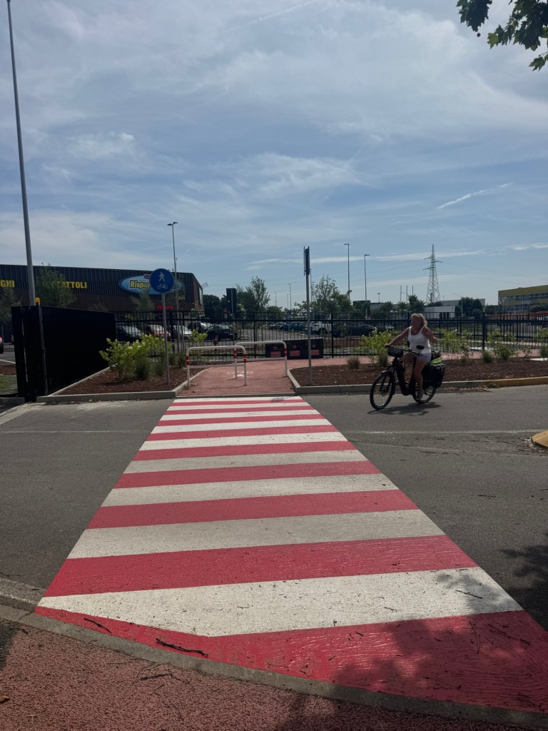 Leaving Bergamo was much better; although cycle tracks were being upgraded. They can’t have been designed by a cyclist.