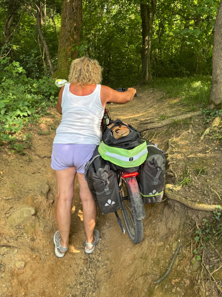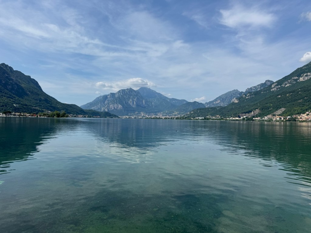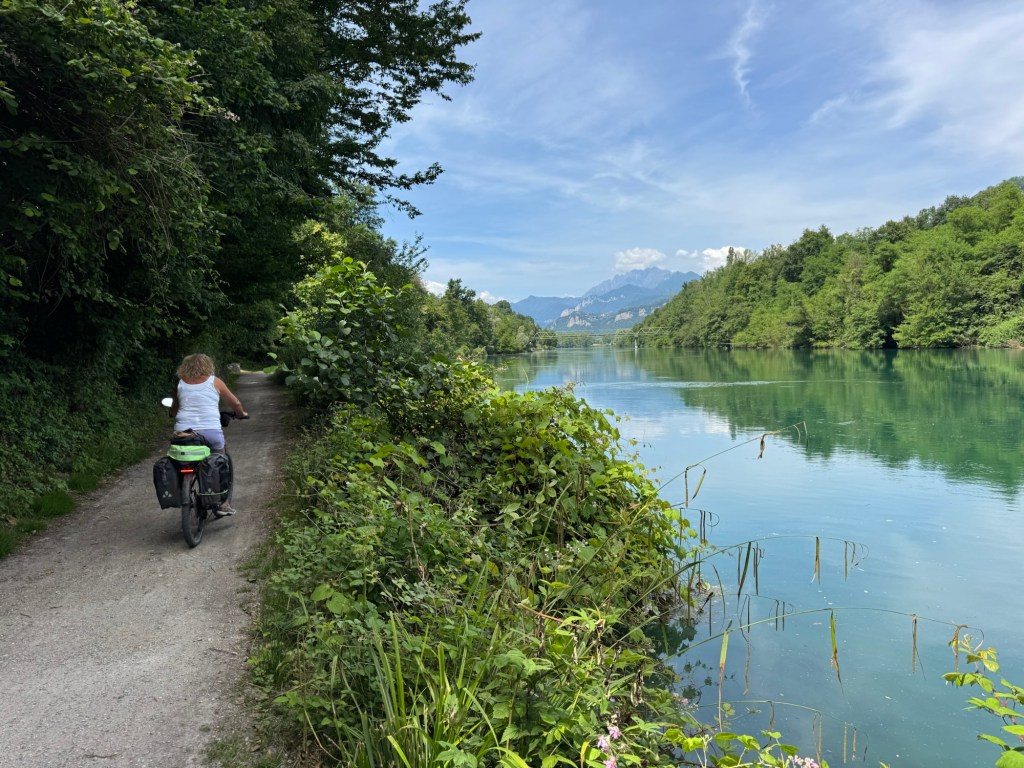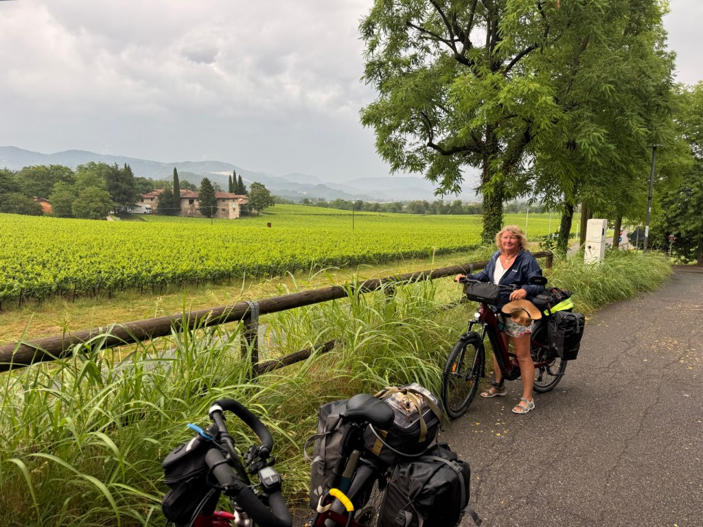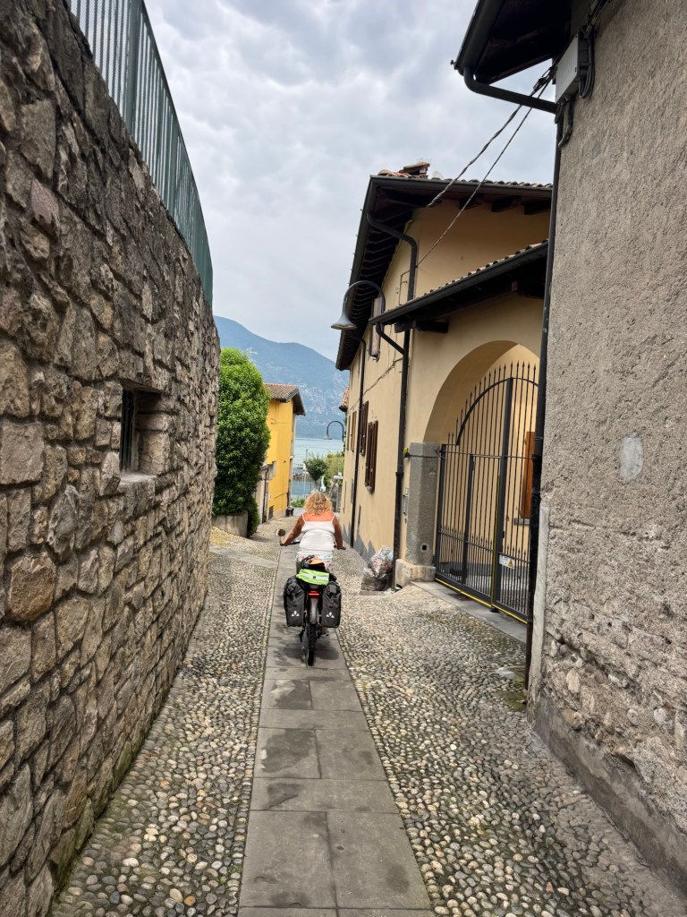 We followed a mapped bike trail to Lake Iseo, only to find that it was now a protected nature area and bikes were banned😡 The person we saw was fisherman who told us there was a guard ahead who would likely fine us if he saw us on bikes. We reluctantly we returned 2 kms and took the busy road route.