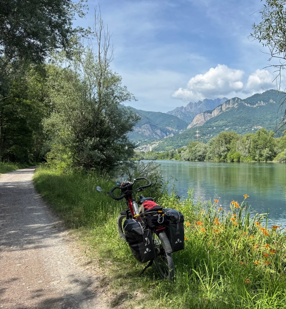 Hi both sure it was lake Lecco and not lec lako. Ha ha!!. Lovely views Rob. Just wondering if you had a throttle leaver you might have been able to use it to move your bikes uphill whilst walking. I’m hoping to get on my bike this year and do some touring. What is this site you are using might give it a go myself for my bike rides. Hope Sue is better after her fall cheers Mark.