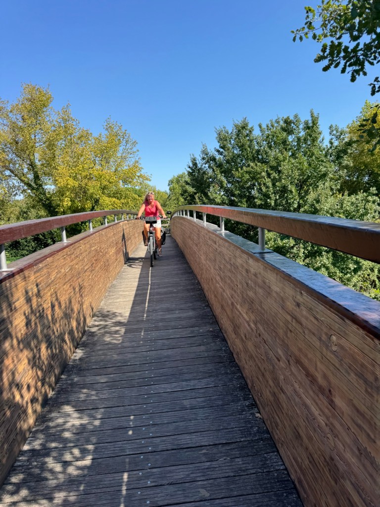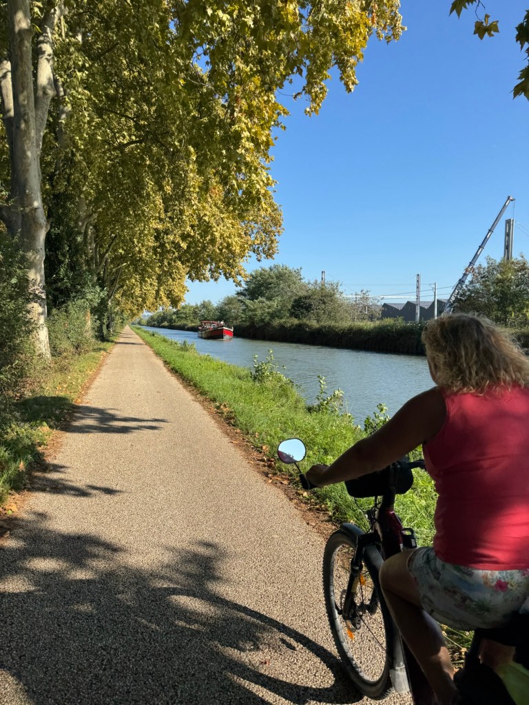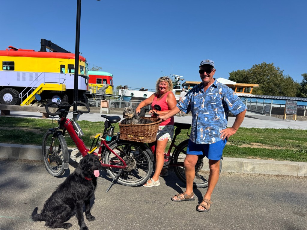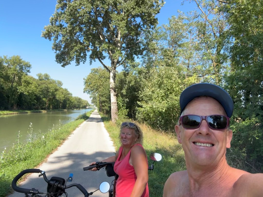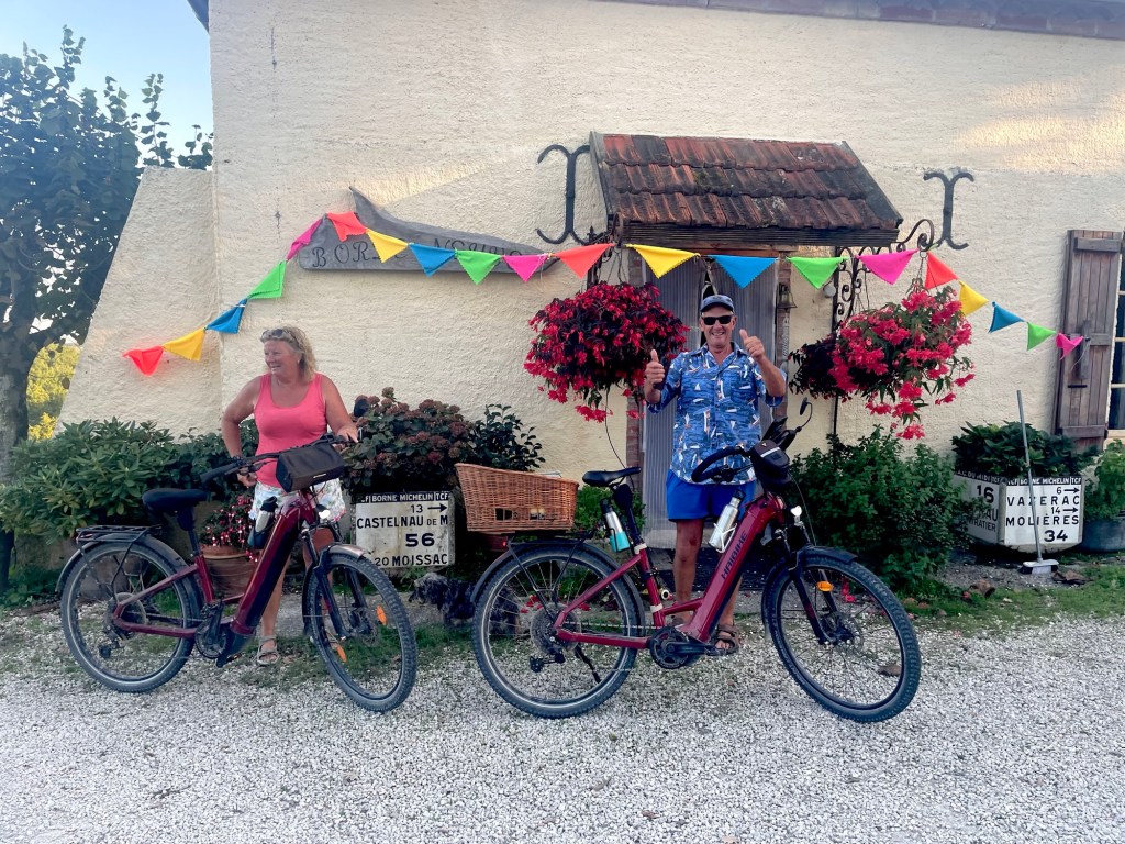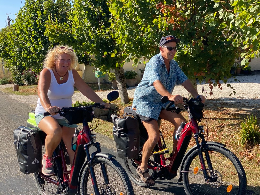 We cycled for an hour and then headed into the town of Grissolles for a coffee. There we met an English couple who had shipped their bikes from their home in Australia and were travelling from Nantes to Girona, in Spain. We had so much in common and shared our experiences for their route ahead. They were envious of our e-bikes as they’d been pushing hard against the strong wind, the same wind that we were enjoying!